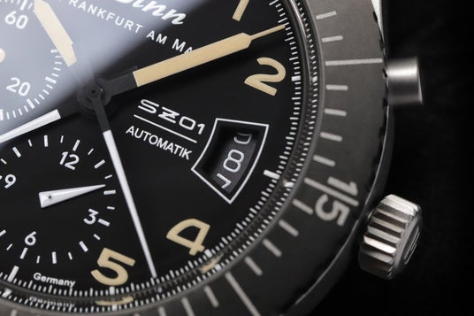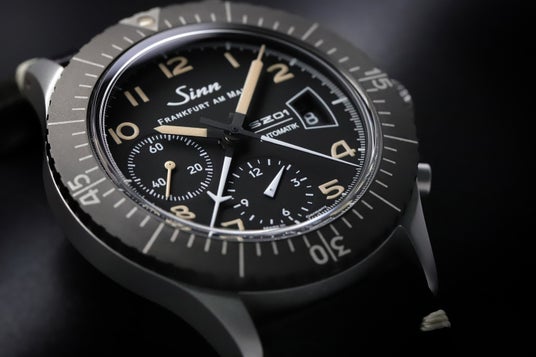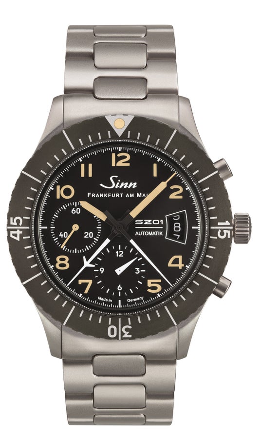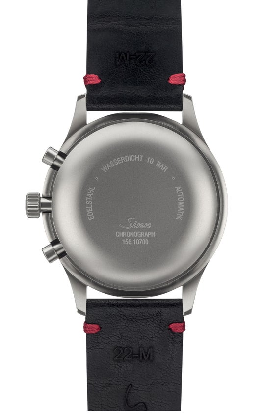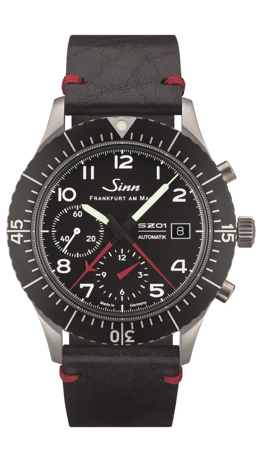 新しいモデル「156.1シリーズ」の革新的な特徴は、SINNインハウスのクロノグラフ・ムーブメントSZ01に反映しています。その利点はクロノグラフ計測のストップタイムをより簡単に、素早く、正確に記録できることで、また視認性の面でも明らかに優れています。SZ01ムーブメントは、新設計のねじ込み式ケースバックを備えたケースに組み込んでおり、直径43mmの歴史的な先代モデルのスライド式ケースを審美的に再現しています。現代の156.1シリーズでは、カバーガラスにはサファイアクリスタルを採用しており、初代モデルで使用したアクリルガラスよりも傷がつきにくいのが特徴の一つです。