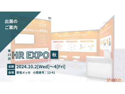 企業向け研修サービスを軸に人材育成を支援する株式会社シェイク(本社:東京都千代田区/代表取締役社長:吉田実)は、2024年10月2日(水)から4日(金)まで開催される「第22回総務・人事・経理Week 秋」内の「東京 HR EXPO」に出展いたします。