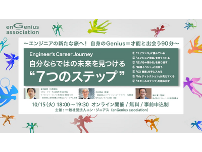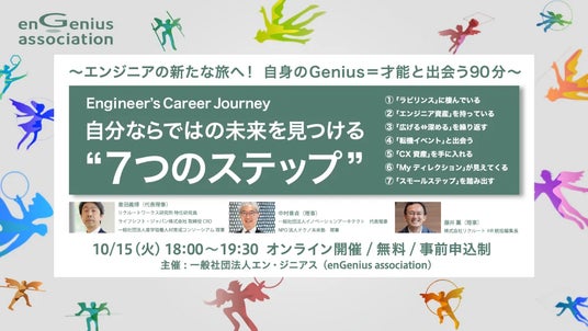 今回開催するセミナーでは、【CXモデル〈Engineer’s Career Journey〉の全容=自分ならではの未来を見つける“7つのステップ”の解説】、【3人のロールモデル”の事例紹介】、【自身の才能=Geniusを発見する“2つの機会】をご案内します。