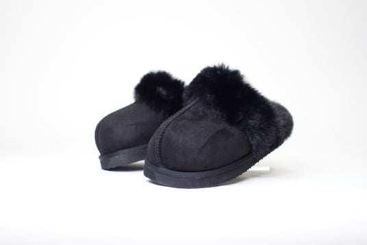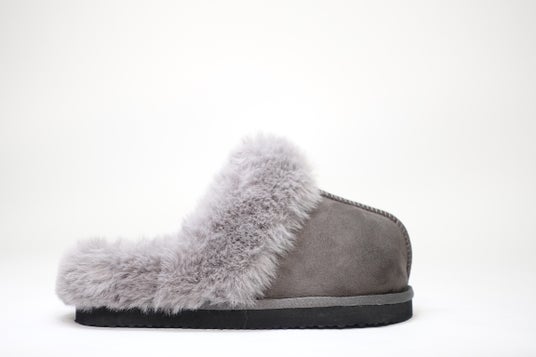 秋冬らしい【スエード調×ファー】の素材感ながら、サボが絶妙な抜け感を演出。