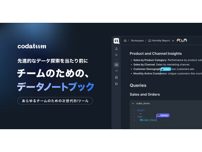 Codatumは、SQLを駆使してユーザーが直感的に複雑なデータ操作を行えるように設計されており、Google BigQuery(TM)を活用した卓越したスケーラビリティとスピードを提供します。また、リアルタイムでの共同編集、強固なセキュリティ管理、AIを活用した分析アシスタントといったエンジニアフレンドリーな機能も備えており、企業のデータ活用を革新します。