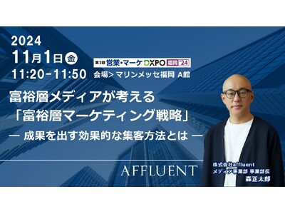 株式会社affluent(東京都港区、代表取締役社長:高山勇樹)は、マリンメッセ福岡 A館(福岡県博多区)で2024年10月31日(木)~11月1日(金)まで開催される「