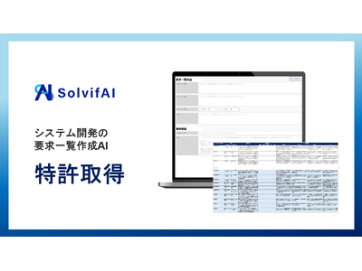ソルビファイ株式会社(本社:東京都港区、代表取締役:CEO湯淺元祥/COO染谷凌大)は、抜け漏れ要件洗出し・実現手段策定・優先順位評価を自動化する「要求一覧作成AI」特許を取得いたしました。