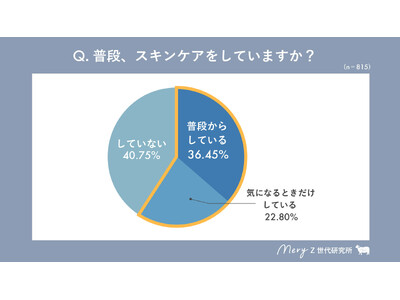 Z世代の男性2,000名に「普段スキンケアをしているか」のアンケートを実施したところ、36.45%が「普段からしている」と回答。「気になるときだけしている」(22.80%)と合わせると、約6割の男性がスキンケアをしていると回答した。