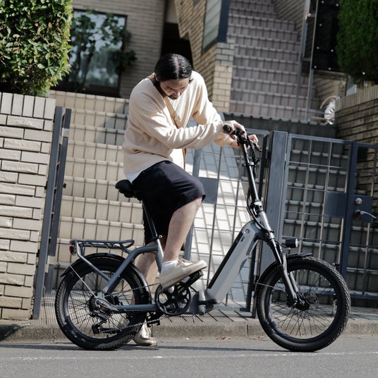 「F.C.B」(エフシービー)は、Folding City Bicycle の略称で、折りたたむことでコンパクトになり、持ち運んだり車に積んだり、都市部のスペースに限りのあるマンションや駐輪場でも保管できるシティバイクです。よくある電動自転車のような普通のデザインではなく、街と調和するようなデザインで、誰もが「こんな自転車に乗りたい」と思えるような自転車を目指しています。