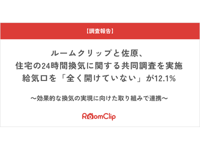 https://roomclip.jp/ )」を運営するルームクリップ株式会社(本社:東京都渋谷区、代表取締役CEO:高重正彦、以下ルームクリップ)と、自然換気装置の開発・販売を行う株式会社佐原(本社:岩手県一関市、代表取締役:佐原芳樹、以下佐原)は、RoomClipユーザー832名を対象に、住宅の24時間換気に関する共同調査を実施しました。調査では住宅の24時間換気を実施していない人の割合が26.6%、自宅の給気口を日常的に閉めている人の割合が20.8%に上るなどの実態が明らかになりました。今後、両社で連携して住宅の24時間換気の重要性の啓発や、24時間換気をしやすくする環境についての提案を行ってまいります。