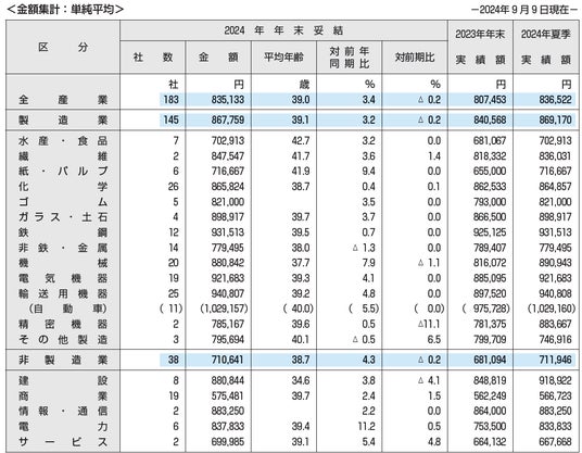 東証プライム上場企業の全産業ベース(183社、単純平均)で83万5133円、対前年同期比で3.4%増となった。産業別に見ると、製造業は同3.2%増、非製造業は同4.3%増と、ともにプラス