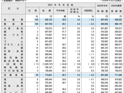 「2024年年末賞与・一時金の妥結水準調査」