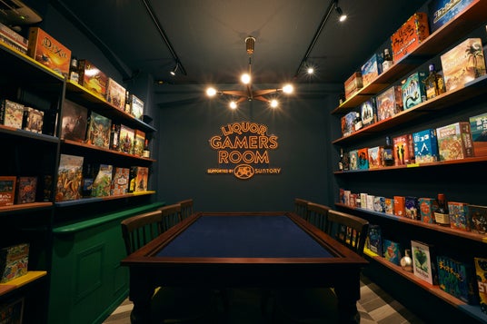 一方、面白法人カヤックでは、「洋酒とボードゲームで人と人をつなぐ」というコンセプトのもと、サントリーが協賛する洋酒とボドゲのコミュニティ「LIQUOR GAMERS CLUB」を主催しています。そしてこの「LIQUOR GAMERS CLUB」ではこれまで、1日1組限定の抽選予約という形で、洋酒とボドゲを嗜むためだけの大人の秘密基地「LIQUOR GAMERS ROOM」を運営しておりました。