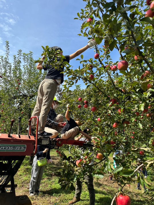 りんご収穫体験 & 選別作業自分たちでりんごを収穫し、選別作業を体験。A品のりんご1kgをお土産としてお持ち帰りいただけます。
