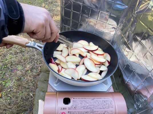 リンゴのスイーツづくり収穫したばかりのりんごを使って、青空の下で手作りのりんごのスイーツ作りに挑戦!