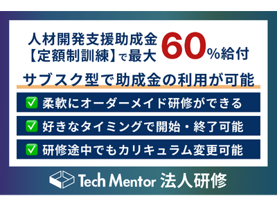Tech Mentor法人研修のサブスク型オーダーメイド研修では、人材開発支援助成金「定額制訓練」を利用することができます。