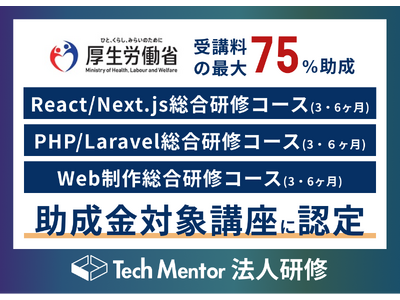 株式会社if(代表取締役:伊藤 史弥、以下「当社」)の法人向けIT研修事業「Tech Mentor法人研修」は、研修費用の75%を助成可能な高度デジタル人材訓練に適応いたしました。