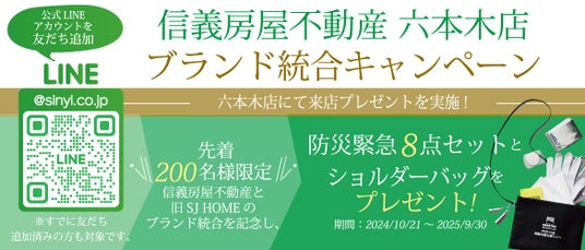 信義房屋不動産株式会社(本社所在地:東京都渋谷区、代表取締役:王 茂桑)は、2024年10月21日(月)より、六本木店にてブランド統合を記念したキャンペーンを実施いたします。本キャンペーンは、旧SJ HOMEとのブランド統合を祝し、お客様により良いサービスを提供する新たな一歩として位置づけられています。