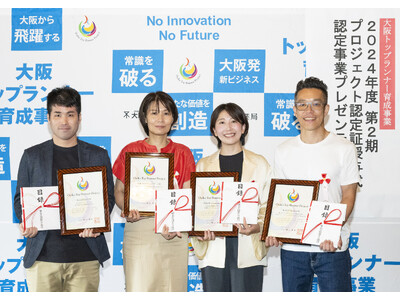 公益財団法人大阪産業局が運営する【大阪トップランナー育成事業】において、新規性があり成長が期待できる大阪の中小企業の有望プロジェクト4件を大阪市が認定。2024年9月30日(月)、大阪市中央公会堂にて認定証授与式及びプレゼンテーション会を実施しました。