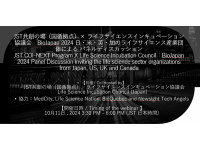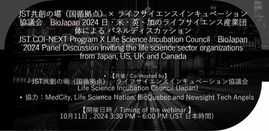 日本国内のライフサイエンス分野に関わる事業の創造、発展を支援することを目的として活動するライフサイエンスインキュベーション協議会(東京都千代田区、Willsame株式会社運営)は、JST共創の場(国循拠点)と、BioJapan 2024にて日・米・英・加のライフサイエンス産業団体によるパネルディスカッションを開催いたします。