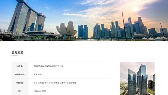 オフィスナビ株式会社は、日本国内でオフィスコンサルティングを行っており、累計契約件数は16,000件を超えました。賃貸オフィス検索サイト「オフィスナビ」「居抜きオフィスナビ」「Rental Office Search」など多様なサイトを運営しており、2006年以降蓄積した物件データベースを保有していることが強みです。2024年1月にはシンガポールのシェアオフィス検索サイト「OFFICE NAVI SINGAPORE」を公開し、シンガポールへ進出する企業へのシェアオフィス紹介を開始しています。このたび、さらにシンガポールの一般賃貸オフィスの仲介事業への参入の為、不動産免許を取得致しました。日本語・英語・中国語で対応可能な社員が常駐し、シンガポールへ進出する企業様の選択肢を広げる情報を提供し、オフィスを通じて企業の成長を支援いたします。日本やシンガポールでの実績を活かしながらサイトの多言語対応やグローバル人材の採用・教育を進め、アジアそして世界中の企業のオフィス開設・ご移転を支援して参ります。