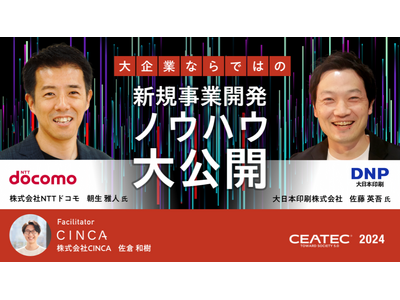 2024年10月15日(火)には、株式会社NTTドコモの朝生雅人氏、大日本印刷株式会社の佐藤英吾氏をお招きし、「アイデア創出から最短1年で事業化! 大企業ならではの新規事業開発ノウハウ大公開」をテーマにパネルディスカッションを開催いたします。