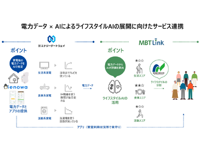東京電力グループの株式会社エナジーゲートウェイ(本社:東京都港区、代表取締役社長:酒井 正充、以下「エナジーゲートウェイ」)と、奈良県立医科大学発スタートアップ企業、MBTリンク株式会社(奈良県橿原市、代表取締役社長:梅田智広、以下「MBTリンク」)は、電力データとAI等を活用したライフスタイルAIの普及展開に向け、サービス連携することをお知らせいたします。