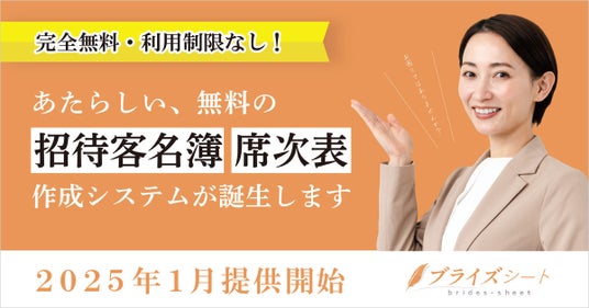 株式会社エスキュービズム(本社:東京都港区、代表取締役社長 薮崎敬祐、以下 エスキュービズム)は、招待客名簿、席次表、引出物集計システム「ブライズシート」を2025年1月に提供開始することを発表しました。