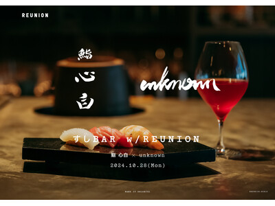 地球と人に優しいウェルネスブランドREUNION(株式会社WWWE、東京都渋谷区)は、食中酒のニュースタンダード「REISHI GIN」のカラフルな楽しみ方を提案すべく、第一弾のらぁめんとREISHI GINを楽しむPOPUP『らぁめんBAR w/ REUNION』に続き、11月1日の「すしの日」に先駆け、予約2年待ちの恵比寿の鮨店「鮨 心白」と、お茶をべースにしたカクテルを提供する恵比寿のBAR「unknown」とのコラボレーションによる1日限りのPOPUP「すしBAR w/ REUNION」を、10月28日(月)に開催します。