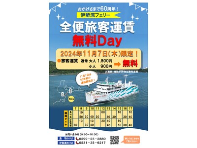 鳥羽伊良湖航路 運航開始日の11月7日は全便旅客運賃無料Dayを開催!