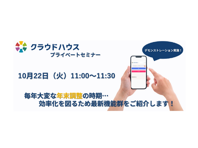 本プライベートセミナーでは、毎年恒例の年末調整業務を効率的に乗り越える『クラウドハウス労務』の”新機能群”を、デモンストレーションを交えご紹介します。