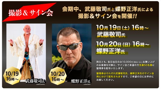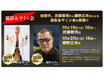 会期中の10月19日(土)には武藤敬司氏、10月20日(日)には蝶野正洋氏をお迎えしてサイン&撮影会も開催予定!