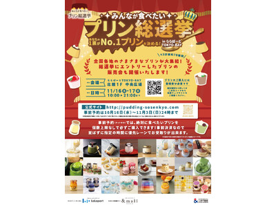 また、今回出店するプリンの中から”今一番食べてみたいプリン”を選ぶ「プリン総選挙」を実施し、一位に選ばれたプリンをお選びの方の中から、抽選で20名様に一位に選ばれた店舗のプリンギフト(限定品)をプレゼント。(投票用紙は11/17(日)15:00までにプリンをご購入いただいた方へお渡しします)