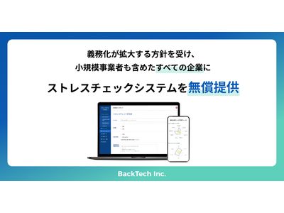 株式会社バックテック(本社:東京都港区、代表取締役CEO:福谷直人 以下、「バックテック」)は、今後ストレスチェックの義務化の対象が拡大される方針であることを受け、新たに対象となる50名未満の小規模事業者を含めた全ての企業に対して、ストレスチェックシステムを無償で提供して参ります。