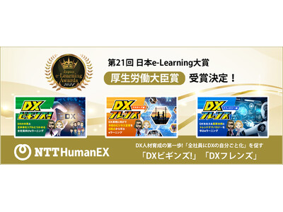 「DXビギンズ!」 「DXフレンズ(テクノロジー編&マネタイズ編)」は、一般社団法人日本オンライン教育産業協会(東京都新宿区、代表理事会長:岸田徹氏)と株式会社産業経済新聞社(東京都千代田区、代表取締役社長:近藤哲司氏)が主催する「第21回日本e-Learning大賞」において厚生労働大臣賞を受賞しました。