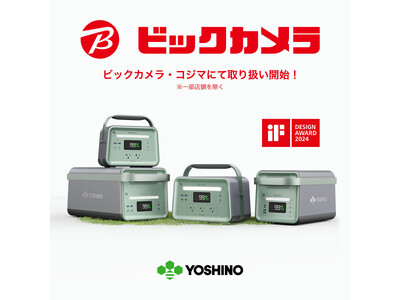 株式会社ヨシノパワージャパン(東京都中央区、以下「YOSHINO」)は世界で初めて※固体電池を採用した「YOSHINO」のポータブル電源とソーラーパネル全製品を10月19日より家電量販店としては初めて全国のビックカメラならびにコジマで販売を開始します。YOSHINOの革新的な固体電池ポータブル電源を全国の皆様に届きやすい体制を整えました。