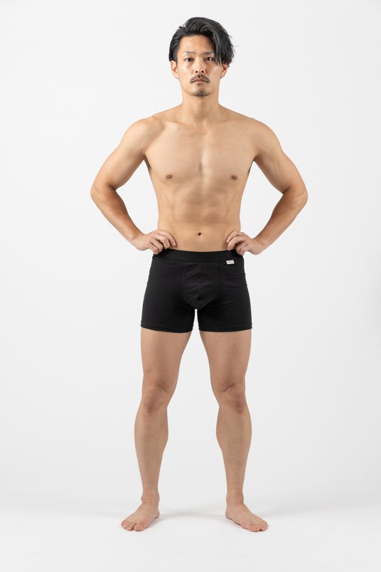 ヘンプコットンで肌に優しく清潔に、リンパの流れを妨げにくいボクサーショーツ。