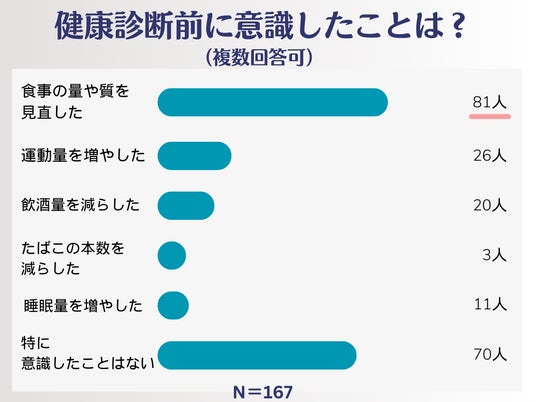 最後に、健康診断後に気をつけるようになったことや実際に起こした行動について詳しく聞いてみました。