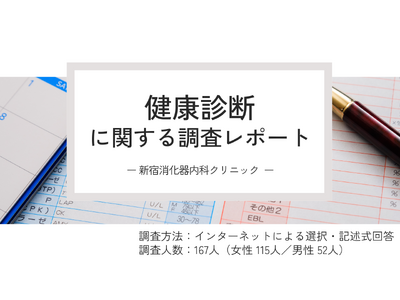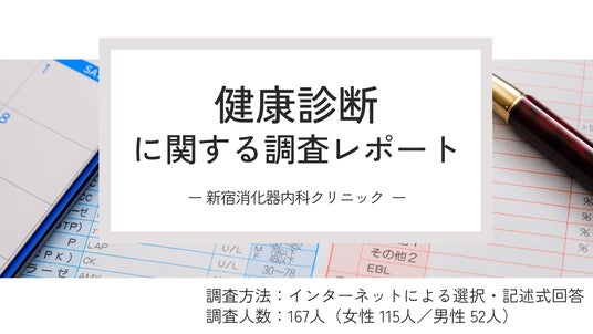 地域を支える医療を目指し、患者様が安心して受診できるように丁寧な診療をいつも心がけている「新宿消化器内科クリニック」はこの度、健康への意識調査の一環として、男女167人を対象に「健康診断に関するアンケート調査」を実施いたしました。
