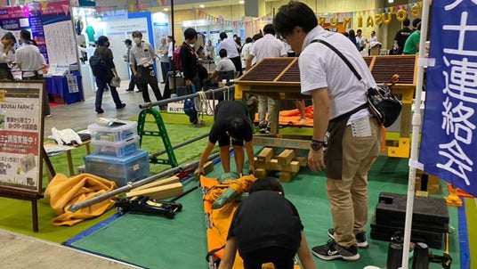 このほか『ぼうさい村』マルシェ会場では、「倒壊家屋からの救出・搬送」体験、ロープワーク体験、最新の防災用品の展示、スタンプラリーのほか、園崎秀治氏による「在宅避難」をテーマにした講演も行います。
