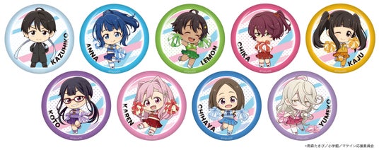 元気に応援するチアガール姿の可愛いミニキャラたちの缶バッジです!