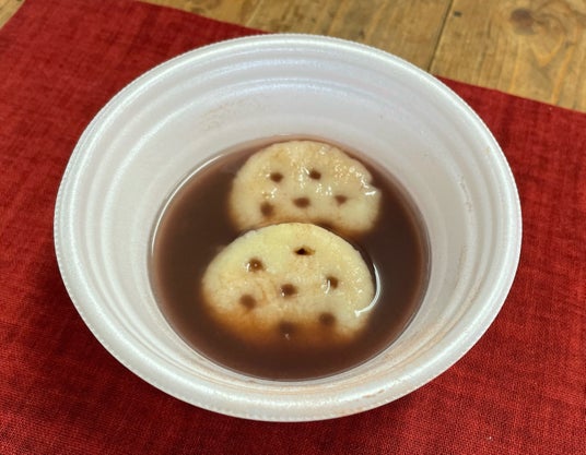 心も体もあったまる、地元の食材を使ったおいしいおもてなし。蓮餅(れんぺい)しるこ(岩国の特産品「岩国れんこん」を混ぜた餅をおしるこにしたもの)や五龍鍋、手作りおでん、栗のデザートなど、旬の食材を使った和食を中心とした飲食販売によるおもてなしをご用意します。