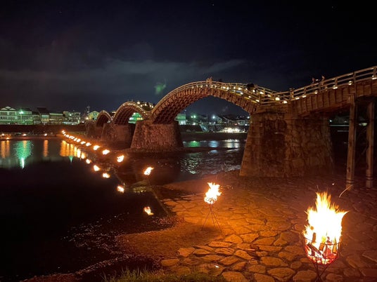 テーマは「錦帯橋今昔物語」。清流錦川を境目に、対岸で「昔」と「今」を表現。創建350年を越えて、なお美しい姿を誇る名勝「錦帯橋」での特別な二日間をご堪能あれ。
