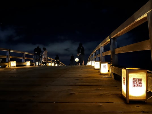 錦帯橋のうえに設置された篆刻行燈や手持ち提灯も相まって、このイベントでしか味わうことのできない芸術的で特別な空間を見ることができます。