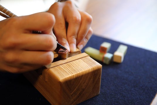 篆刻体験や各種ワークショップで思い出を形にして持ち帰る。篆刻体験では、自分の名前の印を彫り、行燈に押印し、世界でひとつだけの行燈を作ります。