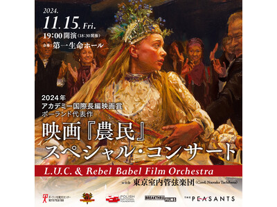 11月15日、ポーランド広報文化センターは、アカデミー国際長編映画賞ポーランド代表作(2024)『農民』の日本プレミア上映を記念して音楽と映像によるスペシャル・コンサートを開催する。特別編集版の映像をスクリーンでご覧頂きながら、本作の音楽を担ったウカシュ・ロストコフスキが自ら率いる楽団とともに映画の世界観を見事に描き出すサウンドを生演奏でお届けするもの。
