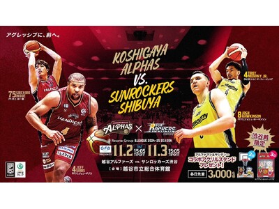 11月2日(土)、11月3日(日)開催「越谷アルファーズ vs サンロッカーズ渋谷」の試合を冠スポンサーとして協賛いたします。会場は越谷市立総合体育館です。
