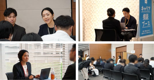 その他にも、特別ブースとして自身のキャリアについて幅広く相談できる「キャリア相談ブース」、求人探しのプロに相談できる「求人相談ブース」、面接の練習ができる「模擬面接ブース」、書類の書き方についてフィードバックをもらえる「書類添削ブース」なども設置。各ブースでは具体的なアドバイスを個別に受ける多くの参加者の姿が見られ、こちらも大盛況となりました。