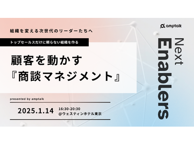「人と人が向き合う時間を最大化する」をミッションとし、企業の営業変革およびセールスイネーブルメントの実現を支援するamptalk株式会社(本社:東京都新宿区、代表取締役社長:猪瀬 竜馬、以下 amptalk)は、2025年1月14日(火)に、大企業向けのセールスイネーブルメントカンファレンス「Next Enablers 2025 Winter」をウェスティンホテル東京にて開催します。