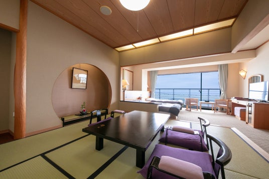 ・ 建物/10階建て、客室/28室(うち露天風呂付客室4、和洋室3、バリアフリールーム1、リクライニングルーム1、コネクティングルーム1)
