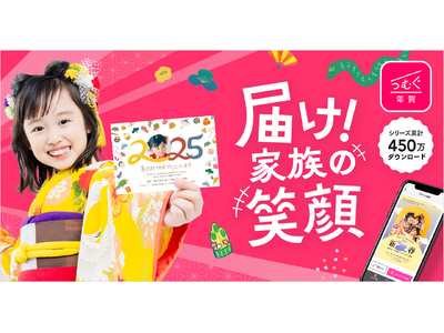 スマートフォン向けの年賀状関連アプリは2010年代半ばから市場に登場し、APPストアでは現在約30種類(当社調べ)の年賀状アプリがリリースされています。2015年に初リリースした「つむぐ年賀」は、スキマ時間でぱぱっと年賀状準備ができる点やアレンジが利く点で主婦層・若年層を中心に人気を集め、今年シリーズ累計450万ダウンロード数を突破しました。