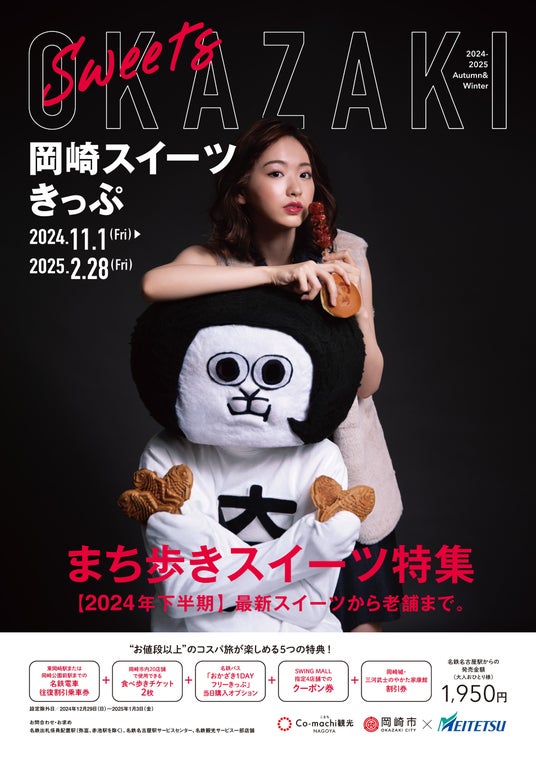 本きっぷは、岡崎公園前駅または東岡崎駅までの「名鉄電車割引往復乗車券」、「食べ歩きチケット」、およびクーポンや特典をセットにしたお得なきっぷとなっています。