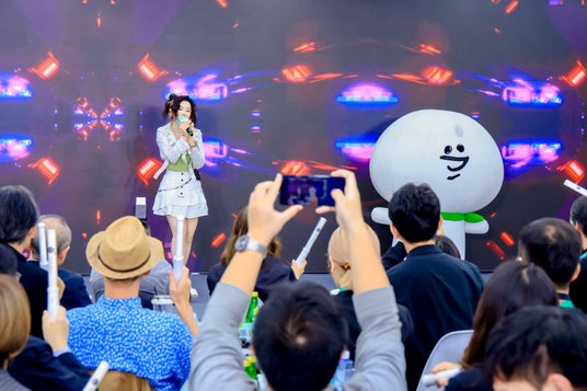 そのイベントのエキシビションとして、ゆる楽器を使ったバンド「ゆるミュージックほぼオールスターズ」の新メンバーとして、中国人アーティストの圏9(ケンキュウ)が加入することが発表されました。同時に、同じくバンドメンバーである大福くんが、中国におけるゆるミュージック活動のマスコットキャラとして起用されたことも発表。WeChatのスタンプも披露されました。そして、早速登壇した圏9は自ら作詞・作曲した「大福くんのうた」を奔放初披露し、会場を盛り上げました。