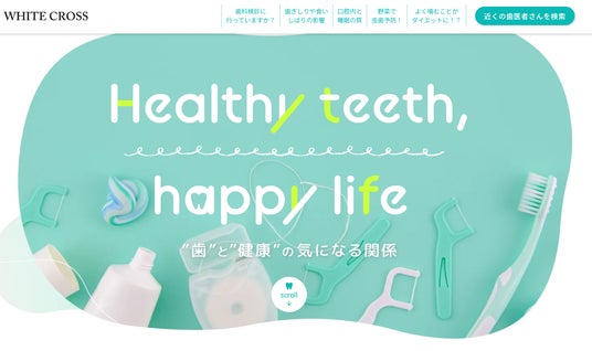 歯科医料業界の専門メディアであるWHITE CROSSは、いい歯の日に際して、一般消費者の方に向けた特設サイトを開設し、今回の実態調査の結果や歯科医料領域で明らかになった最新情報を解説しています。